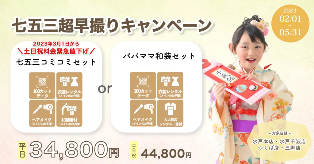七五三のシーズンは混雑が予想されるため、早めの予約が重要です。スケジュールを立て、余裕をもって予約しましょう。スタジオピックでは早期割引プランなども用意してありますので要チェックです!